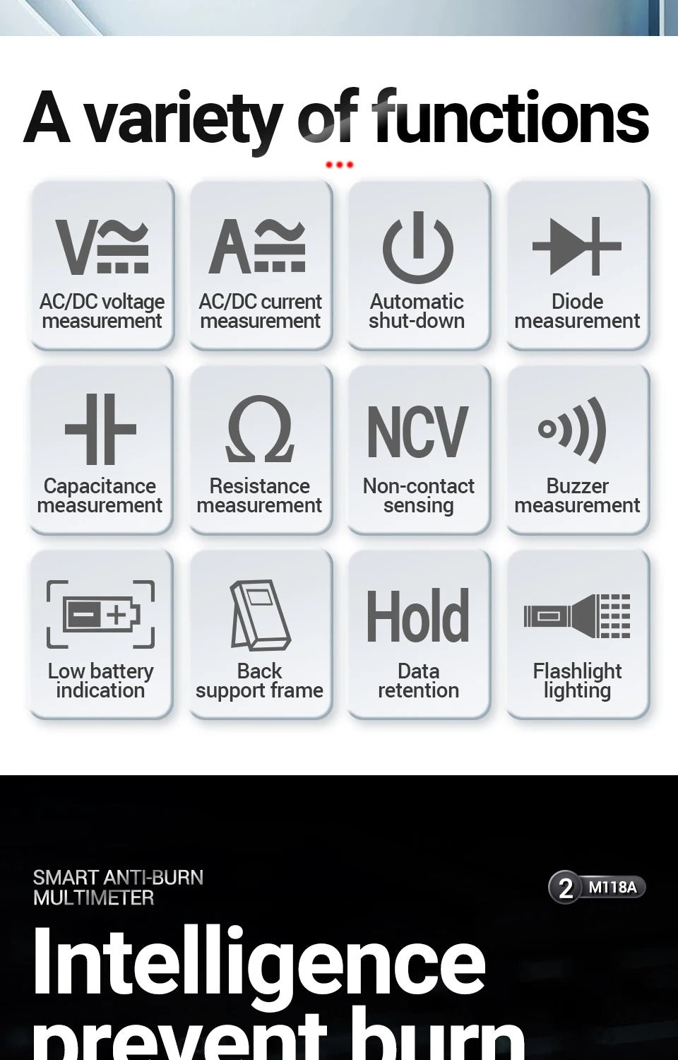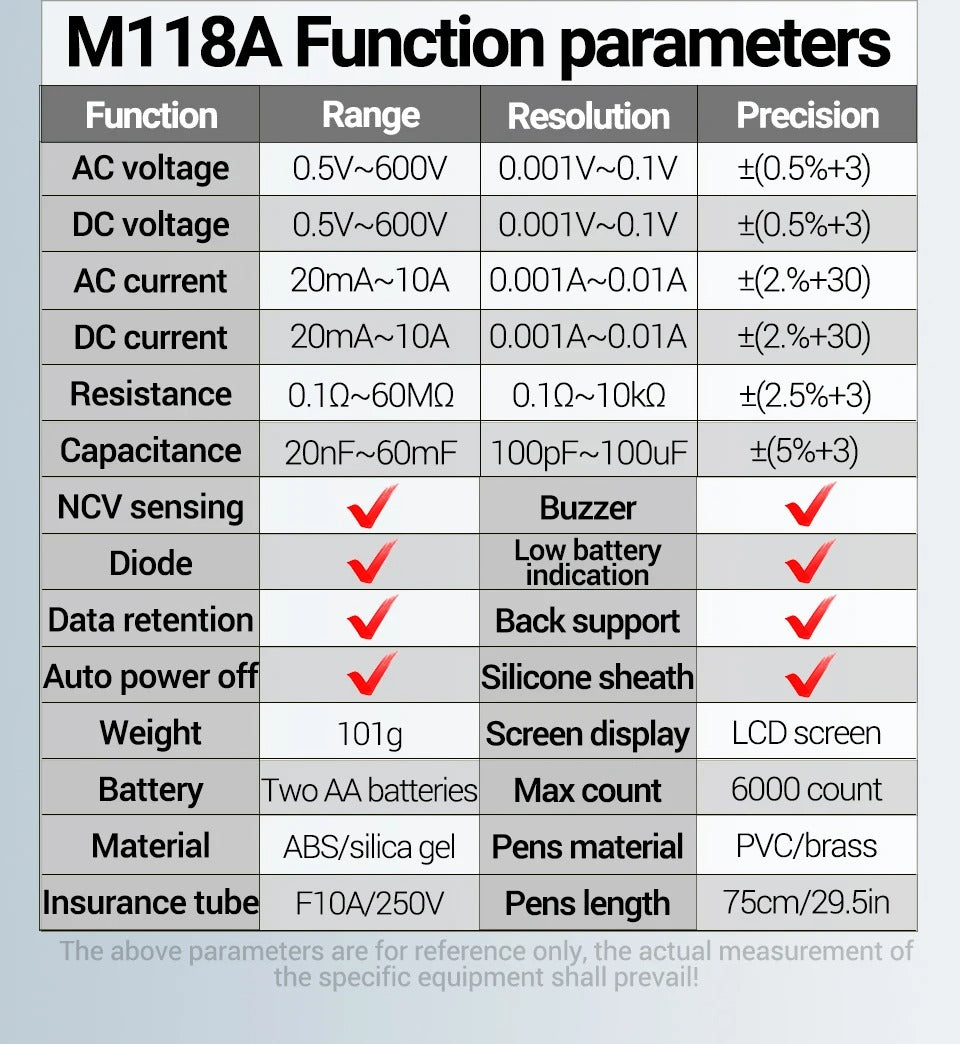 ANENG M118A Digital Mini Multimeter Tester 6000 Counts Mmultimetro True Rms Tranistor with NCV Data Hold Flashlight