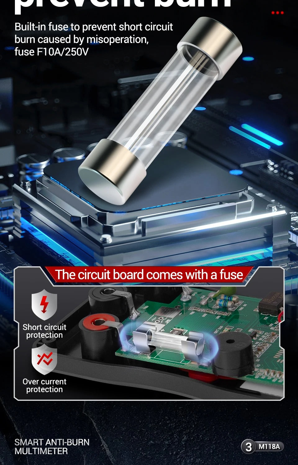 0-60M$\Omega$ အထိ တိုင်းတာနိုင်ပြီး ဝါယာကြိုးများ (wires)၊ ဖျူးများ (fuses) နှင့် အခြားသော လျှပ်စစ် အစိတ်အပိုင်းများ၏ ခုခံအား (resistance) ကို စစ်ဆေးနိုင်သည်။