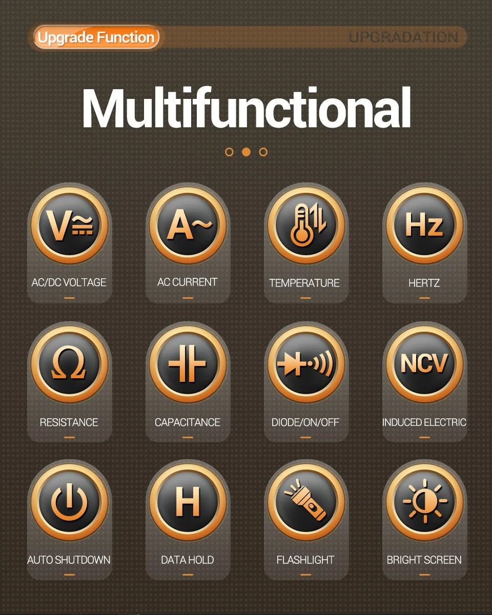 Multi-functional Measurement: Capable of measuring AC/DC Current, AC/DC Voltage, Resistance, Capacitance, Frequency, Diode, Continuity, and NCV (Non-Contact Voltage) detection.