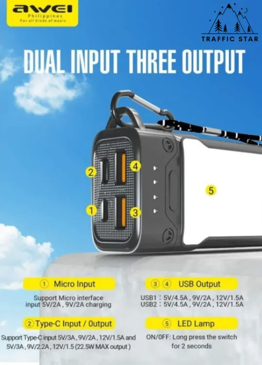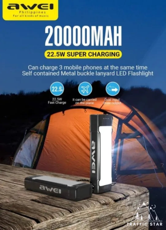 AWEI P175K 20000mAh Powerbank / 22.5W 5A PD + QC Super Fast Charging / 3 Output 2 Input / LED Torch Light