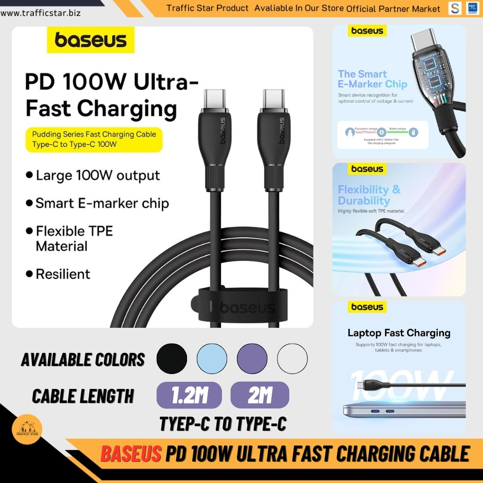 Baseus 100W Type C to Type C PD Cable 1.2 Meter