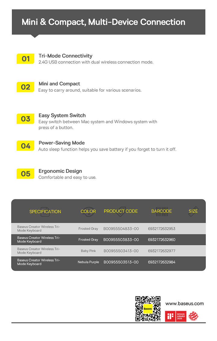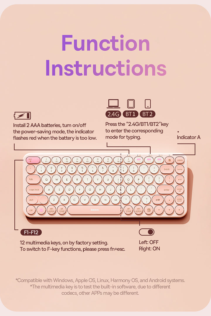 Baseus K01A Bluetooth Wireless Keyboard 5.0 2.4G USB Silent US Layout Creator Keyboard 84 keys