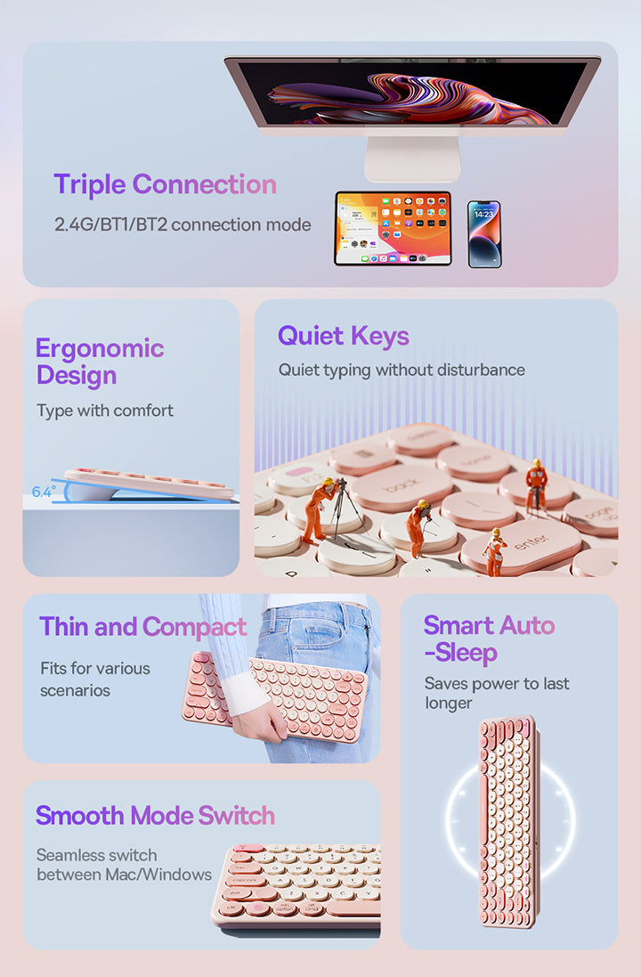 Smart auto-sleep technology extends battery life, ensuring your keyboard is ready when you are.