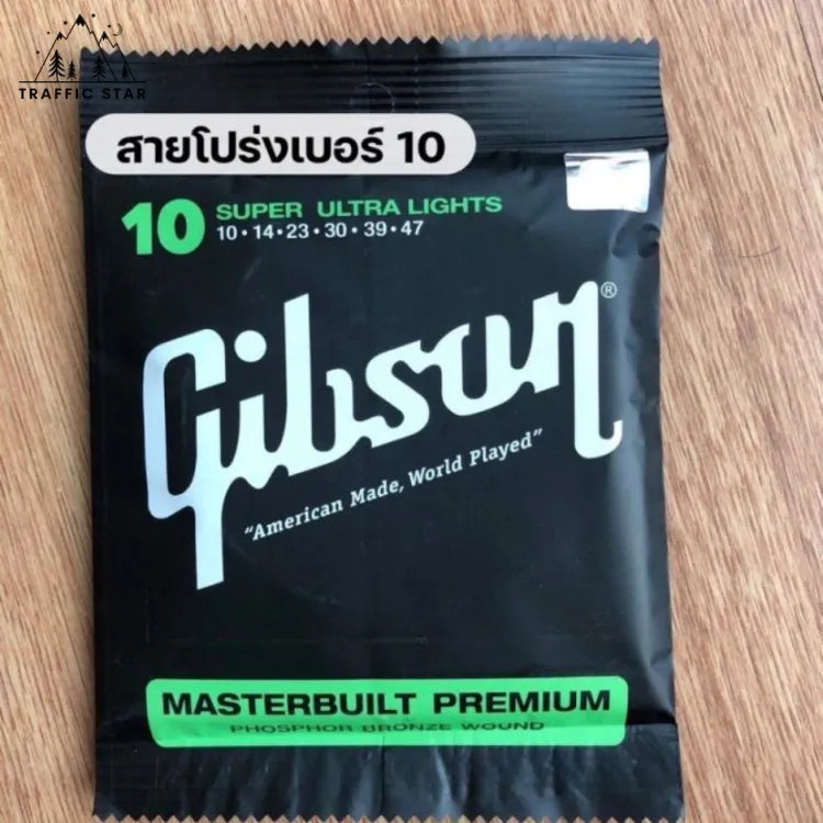 - product details that the customer will receive - 1 set of Gibson acoustic guitar strings (complete set of 6 lines) - transparent number 10 - 0.010p - 0.047p - vacuum packaged products - standard clear tone