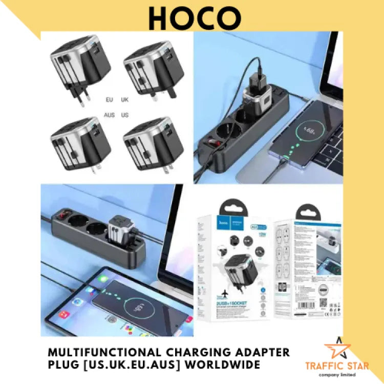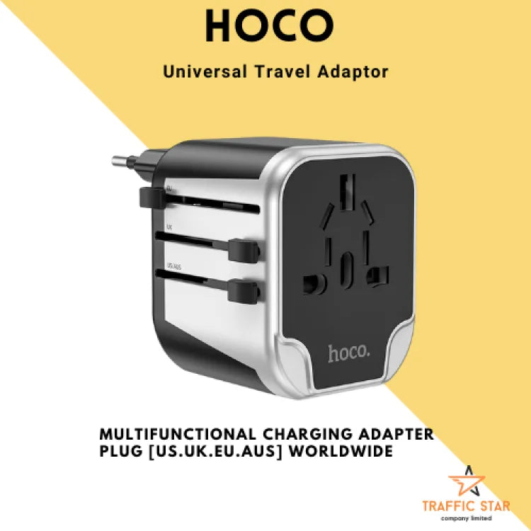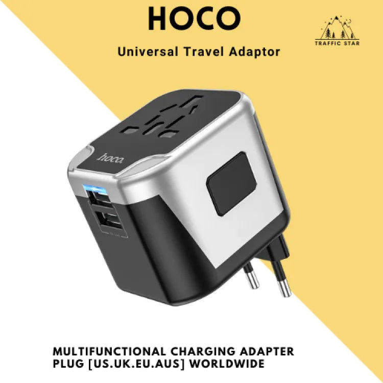 Hoco AC5 2USB + 1Socket Universal Travel Adapter With Plug Conversion EU / UK / US / AUS