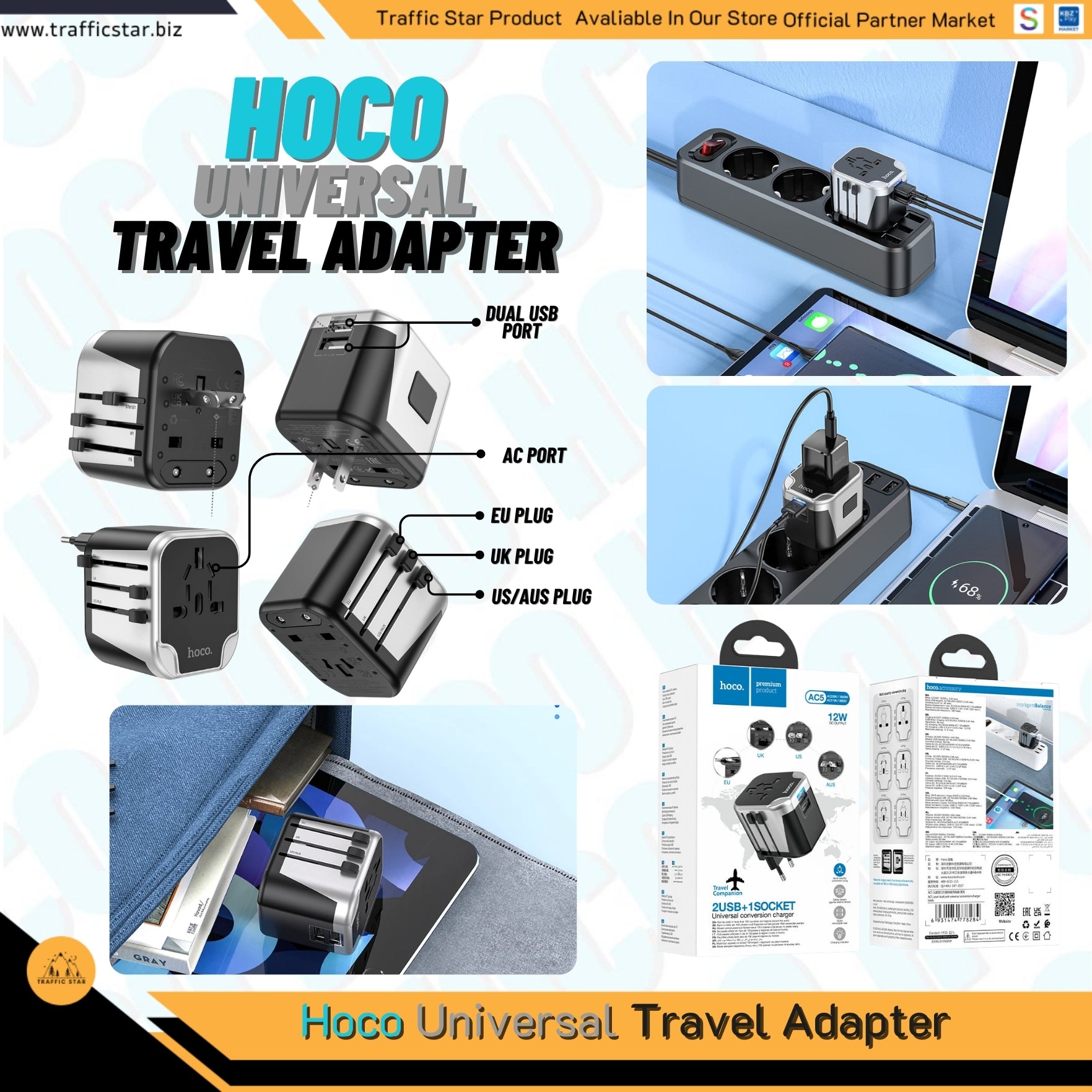 Hoco AC5 2 USB + 1Socket Universal Travel Adapter With Plug Conversion