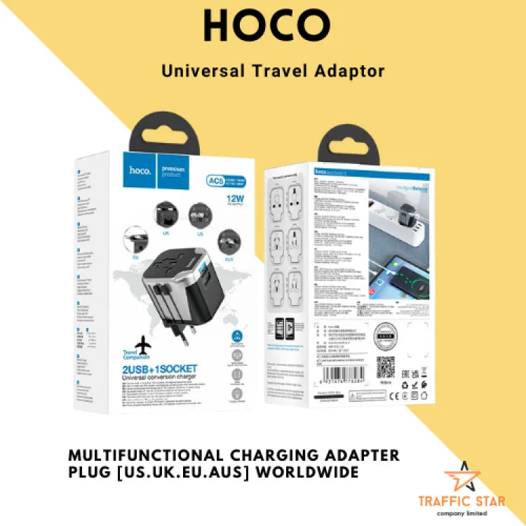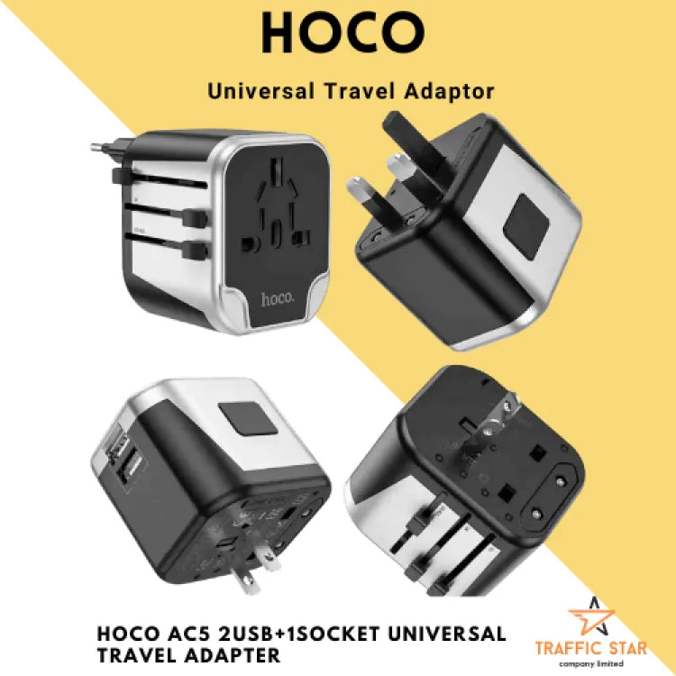 Hoco AC5 2USB+1Socket Universal Travel Adapter