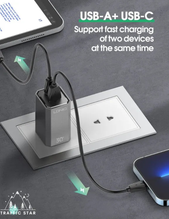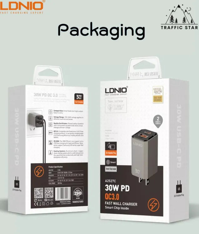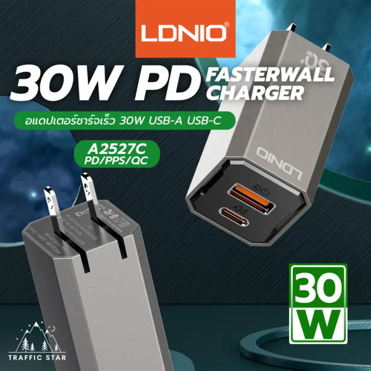 - LDNIO A2527C 30W PD+QC 3.0 Fast Charger