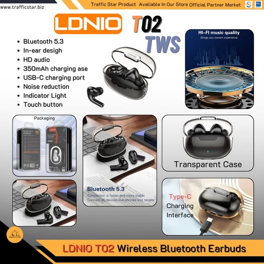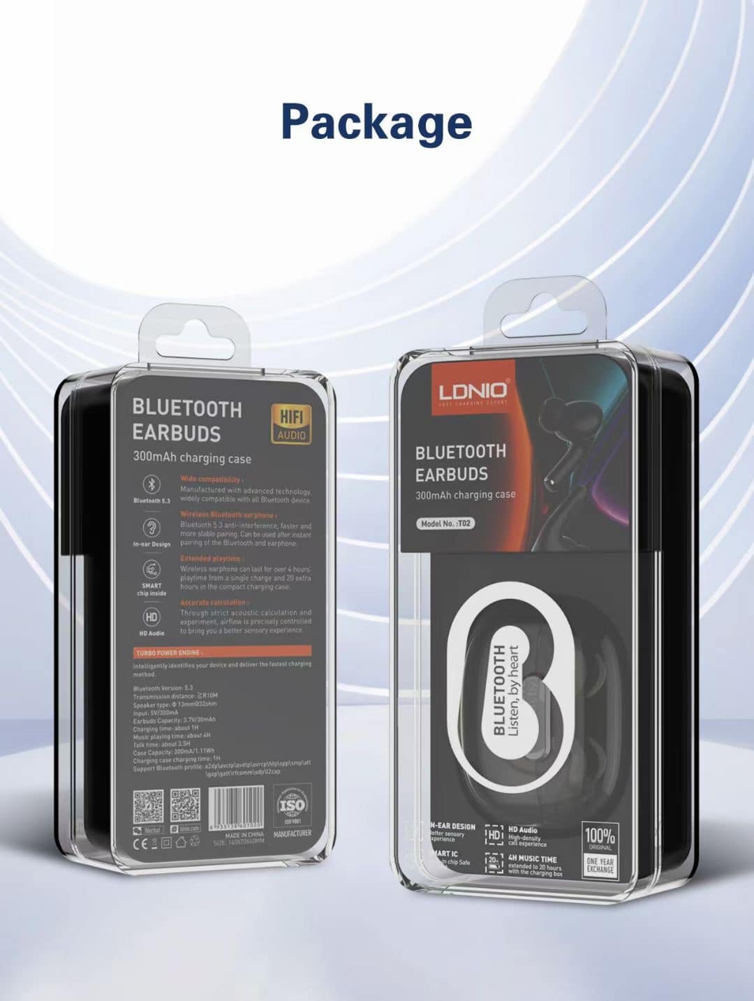 LDNIO T02 Bluetooth Earbuds, Waterproof Gaming, Built-in microphone, TWS Wireless Earbud