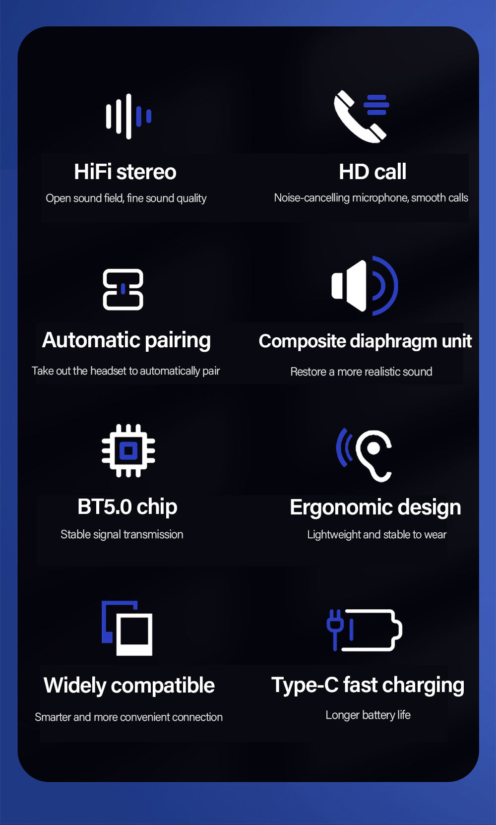- Smart, fast Bluetooth connection, touch control, excellent sound quality.