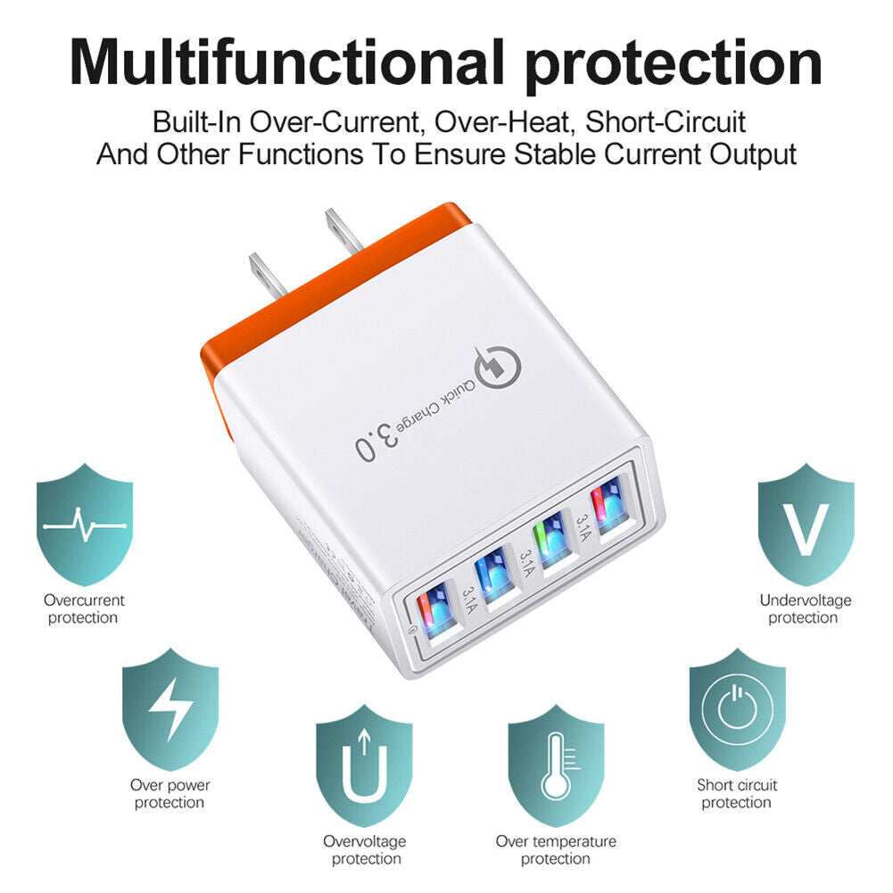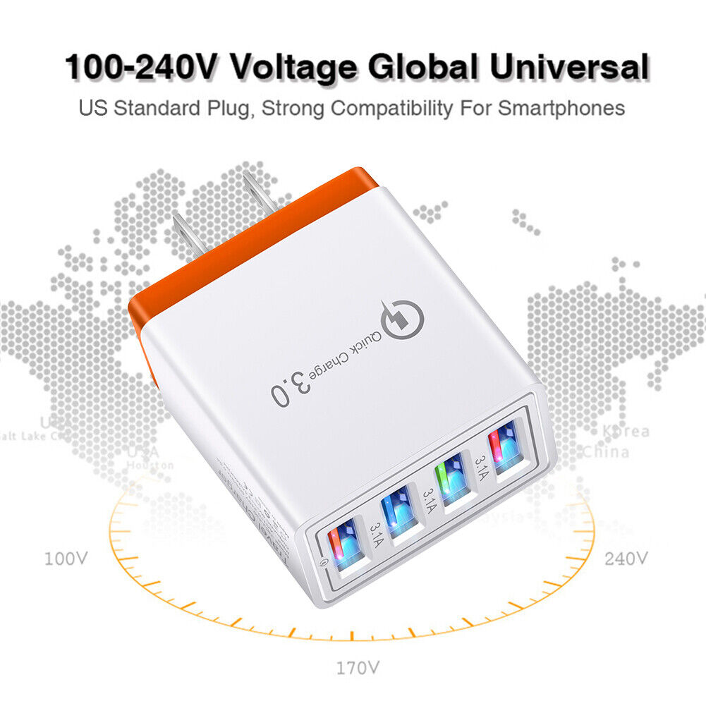 Phone charger 5V/3.1A Quick Charger 4 ports US plug adapter 3.0 Model usb charger
