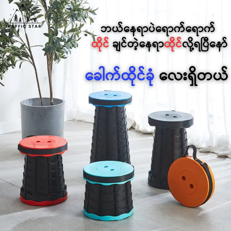 Portable, Foldable Chair Telescopic Round Portable Retractable Plastic Camping Gardening Folding Stool (ဘက်စုံသုံးခေါက်ထိုင်ခုံ)