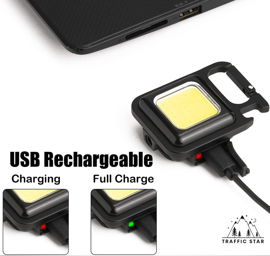 - COB keychain flashlight, high brightness, large spotlight, wide area visibility.