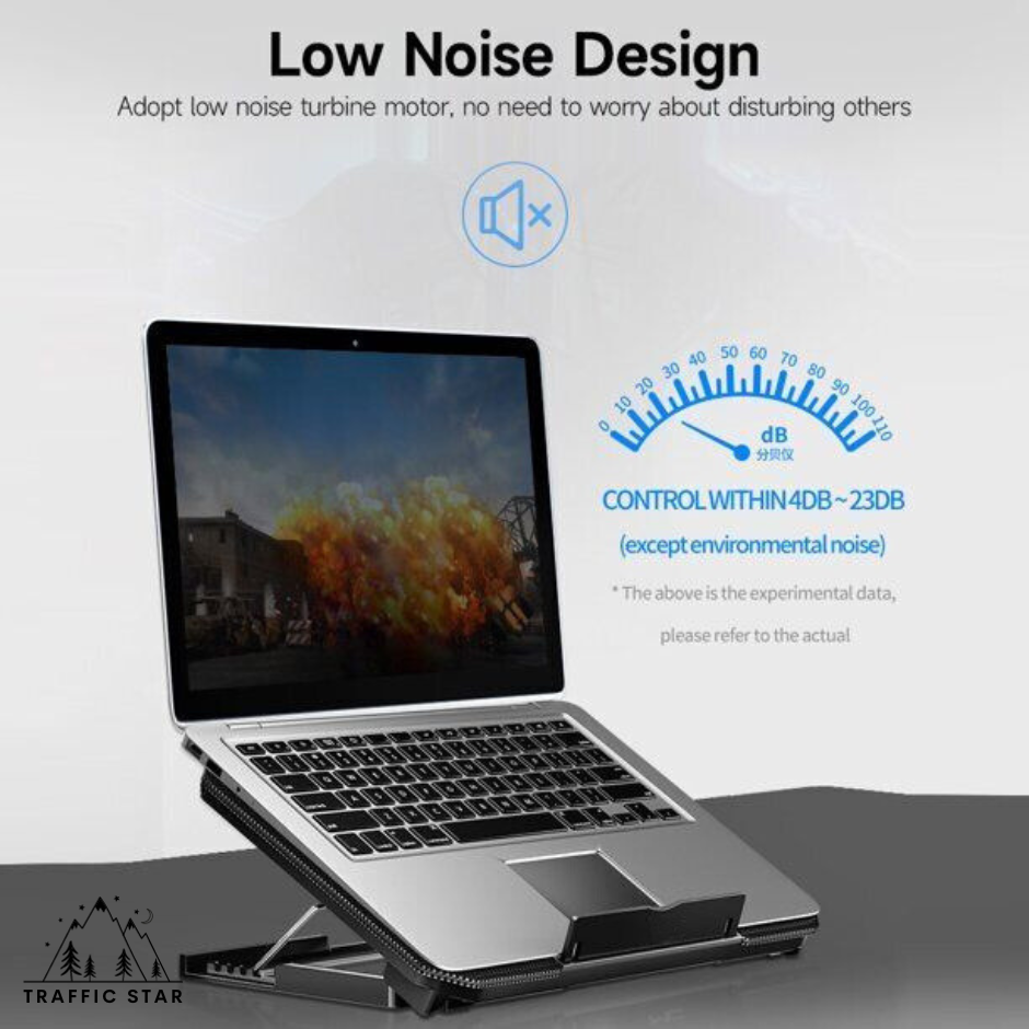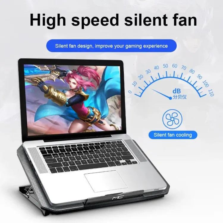 5、The bottom has a folding baffle to protect the notebook ; Adjustable wind speed, adjust the speed at will ; Non-slip silicone bottom