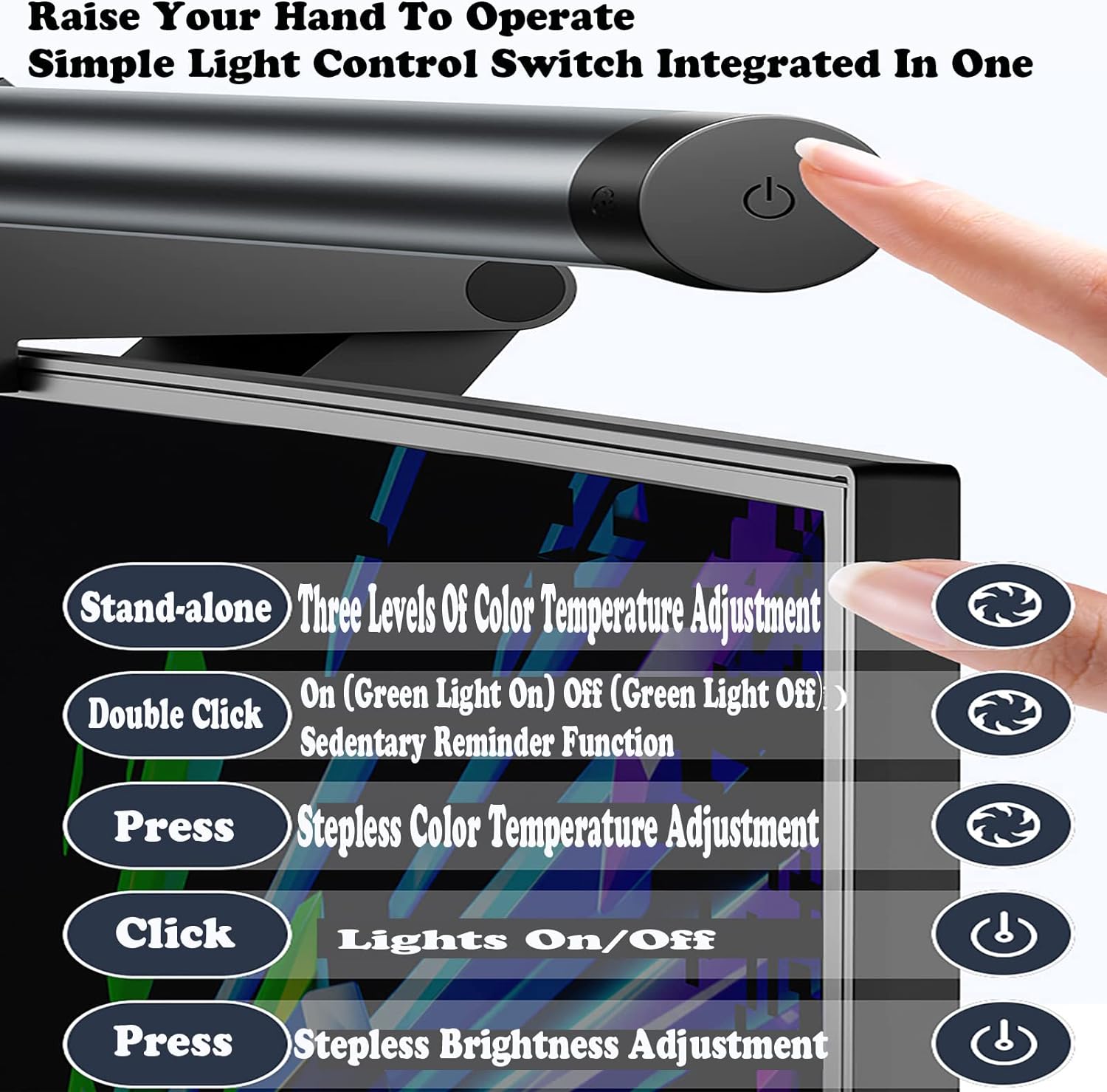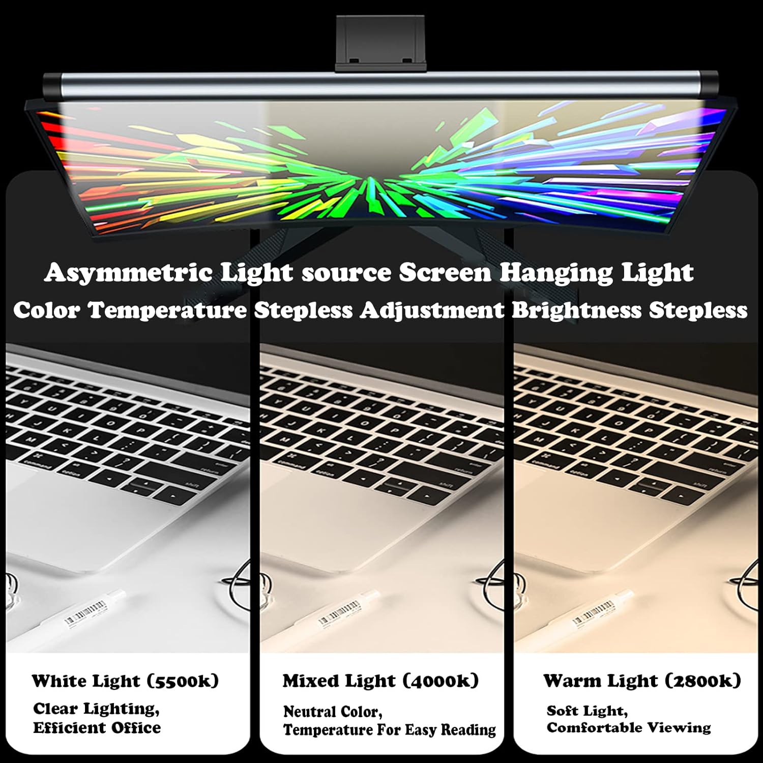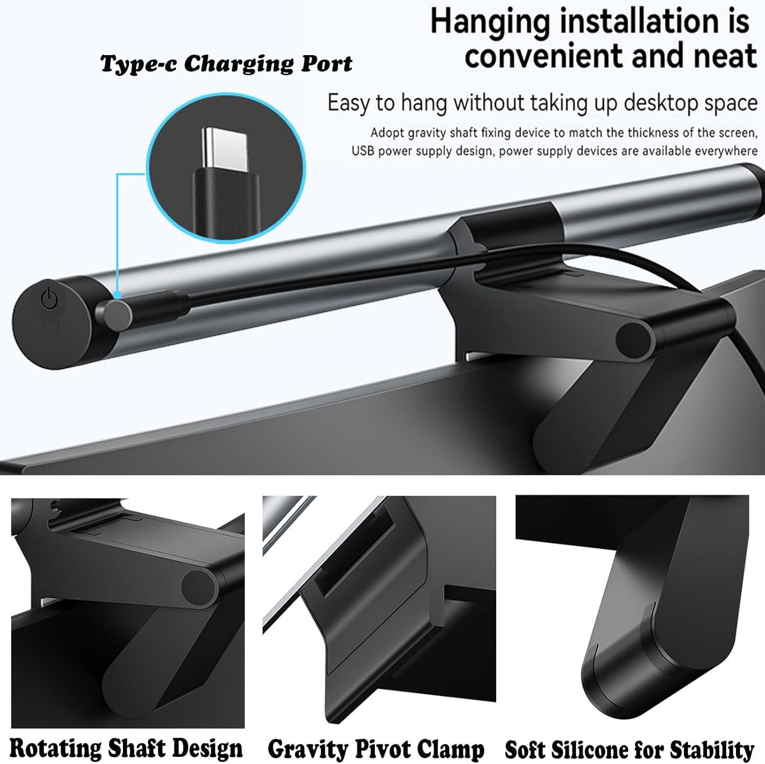 S3 Computer Monitor Light, Screen Light Bar, Stepless Dimming, No Glare, Touch switch with Type-C