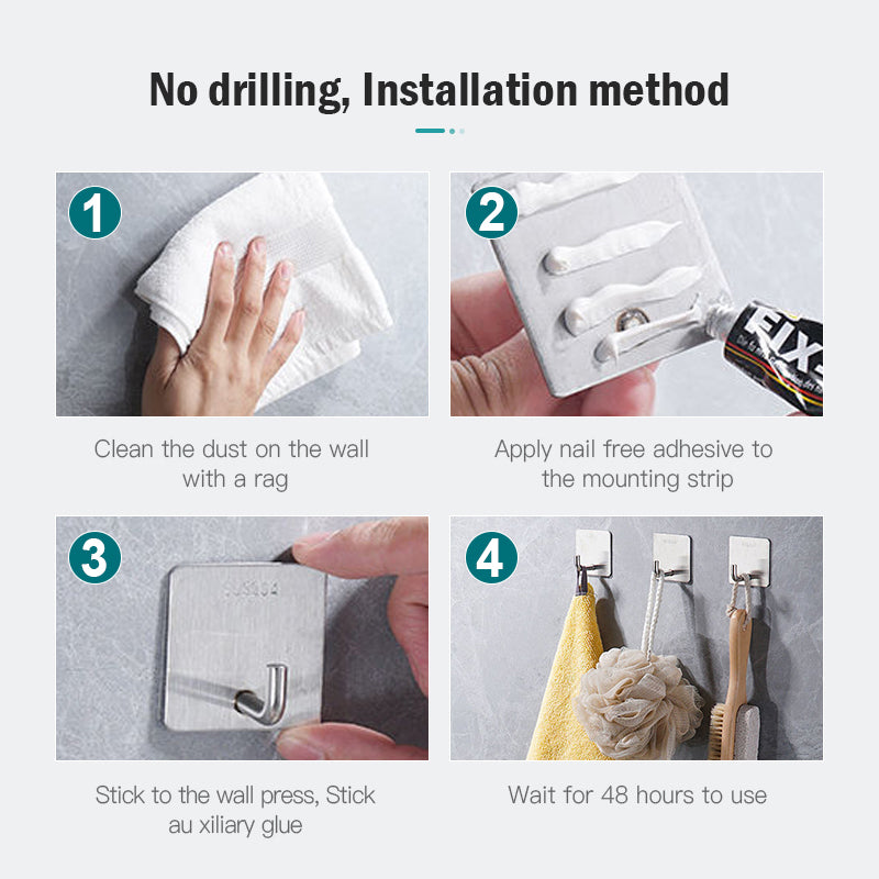 - 304 Grade ရှိသော Stainless Steel ဖြင့်ပြုလုပ်ထားသော နံရံကပ်ချိတ်ဖြစ်သောကြောင့် အရည်အသွေးမြင့်မားပြီး ကြာရှည်အသုံးခံနိုင်ပါသည်